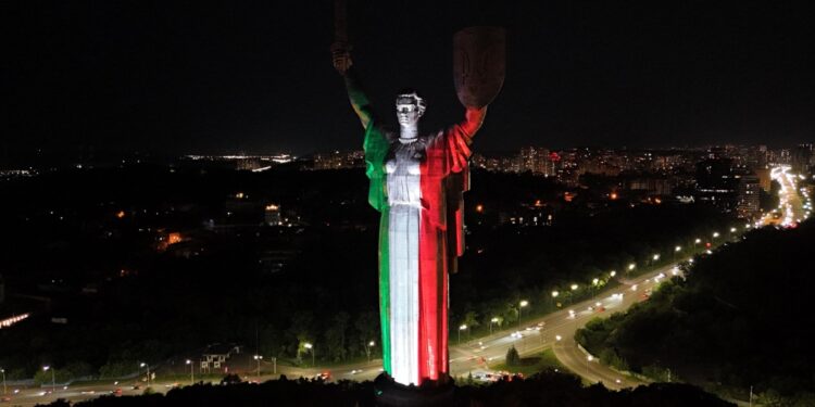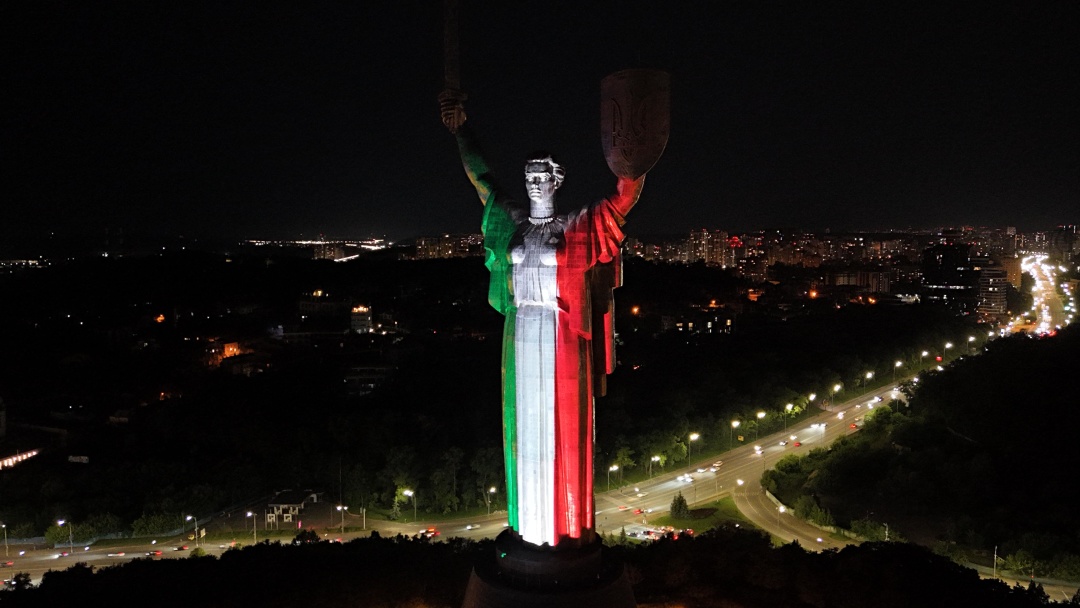 “Цього вечора монумент “Батьківщина-Мати” підсвічено італійським триколором: на уособленні сили України майорять три кольори, “які змушують тремтіти тих, хто все ще наполягає на тиранії”, як співав поет Доменіко Карбоне. Це вражаючий символ спільної відданості свободі наших двох народів“, – сказав дипломат.