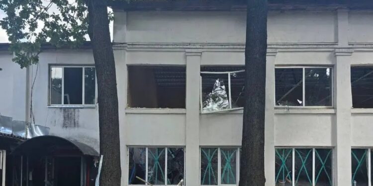 Вибухова хвиля вибила вікна будівлі та пошкодила фасад. На щастя, ніхто з працівників та спортсменів не постраждав.