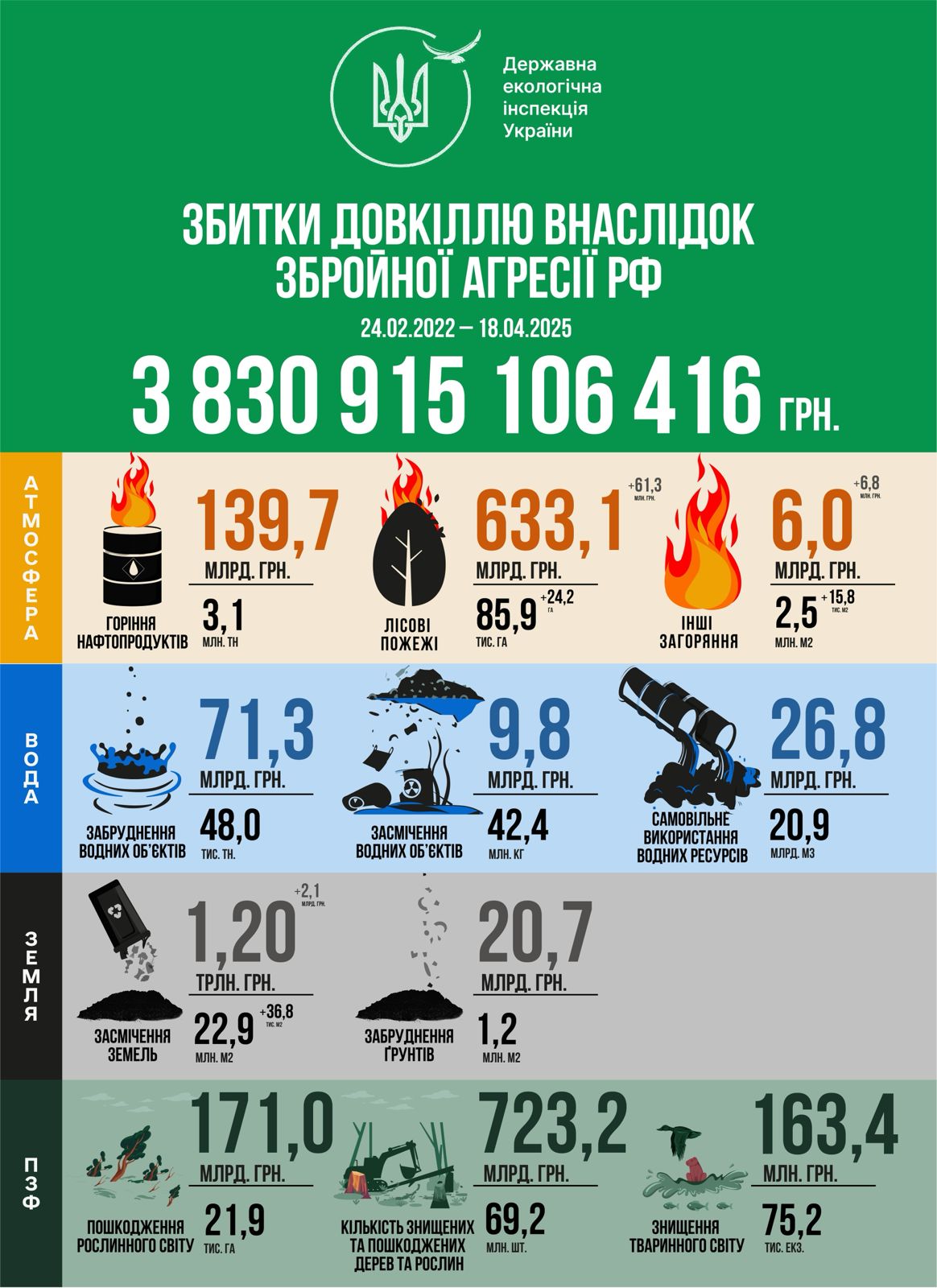 Ця інфографіка — не просто статистика. Це свідчення злочинів проти природи, які не мають терміну давності. Ми продовжуємо документувати всі факти, аби винні понесли відповідальність, а Україна отримала компенсацію за завдану шкоду довкіллю.