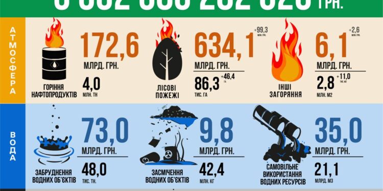 Оновлена щотижнева інфографіка про збитки, завдані довкіллю внаслідок збройної агресії рф.