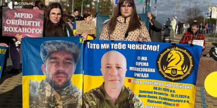 Цього разу родичі та близькі українських військових, які знаходяться у полоні та безвісти зниклих військовослужбовців зібралися на бульварі Миколи Міхновського біля станції метро “Звіринецька”. Прийшли і просто не байдужі люди.