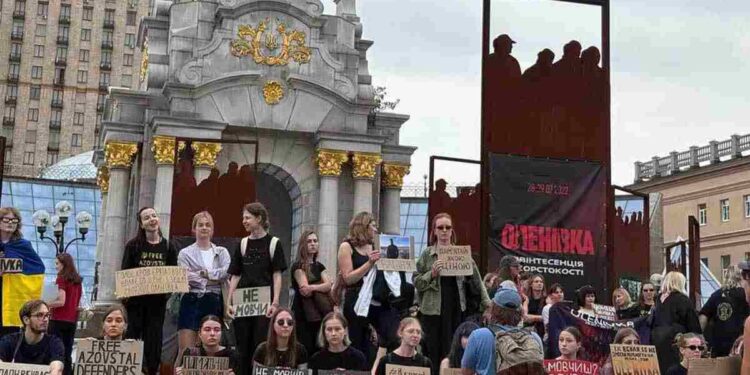 28 липня на Майдані Незалежності в Києві відбулася акція, присвячена третій річниці теракту в колонії в Оленівці, де в ніч з 28 на 29 липня 2022 року загинули щонайменше 50 українських військовополонених, переважно бійців полку «Азов».