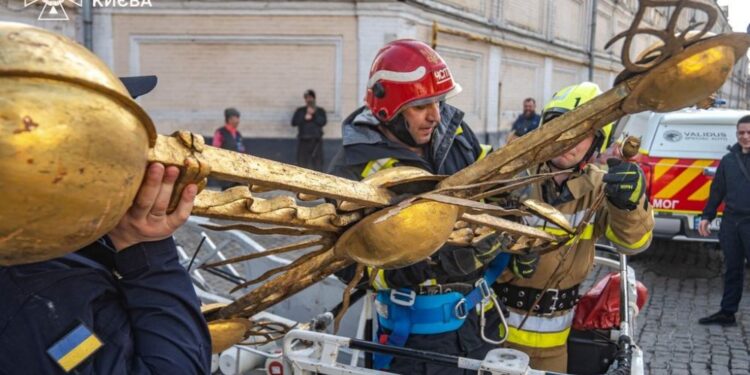Хрест, який нібито упав з Церкви Всіх Святих у Києво-Печерській Лаврі, навмисно демонтували, щоб запобігти руйнуванню.